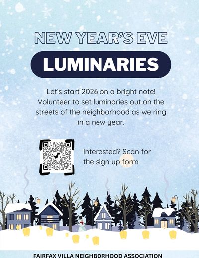 The Fairfax Villa Neighborhood Association is planning to celebrate the end of 2025 with the annual luminaries display. We are gathering materials for every house in the Villa to have luminaries !